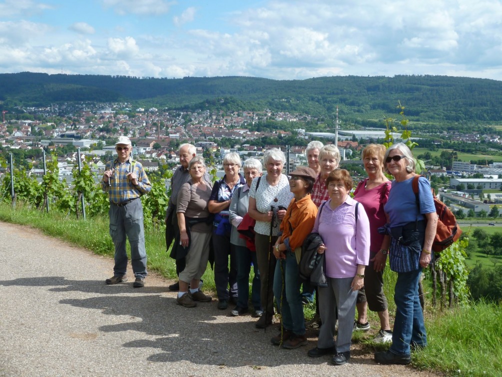 Auf dem Rückweg nach Schorndorf nach einer Wanderung, geführt von Frau Stösser, zu dem Gehölzgarten im Steinachtal (Berglen), 19. Juni 2016.