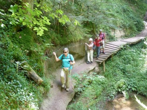 Otto Tempes führte am 14. August eine Wanderung entlang dem Bahnerlebnispfad von Welzheim nach Klaffenbach durch die wildromantische Edenbach- und Wieslaufschlucht.
