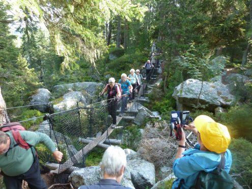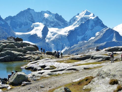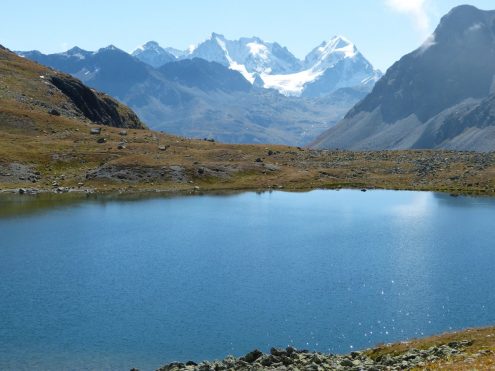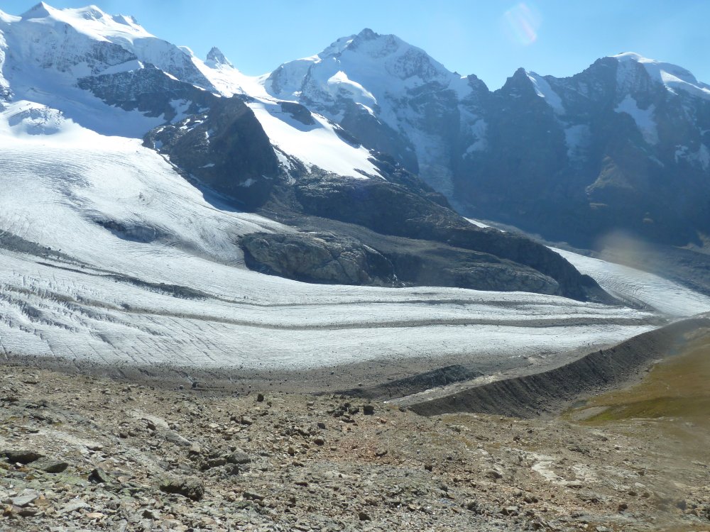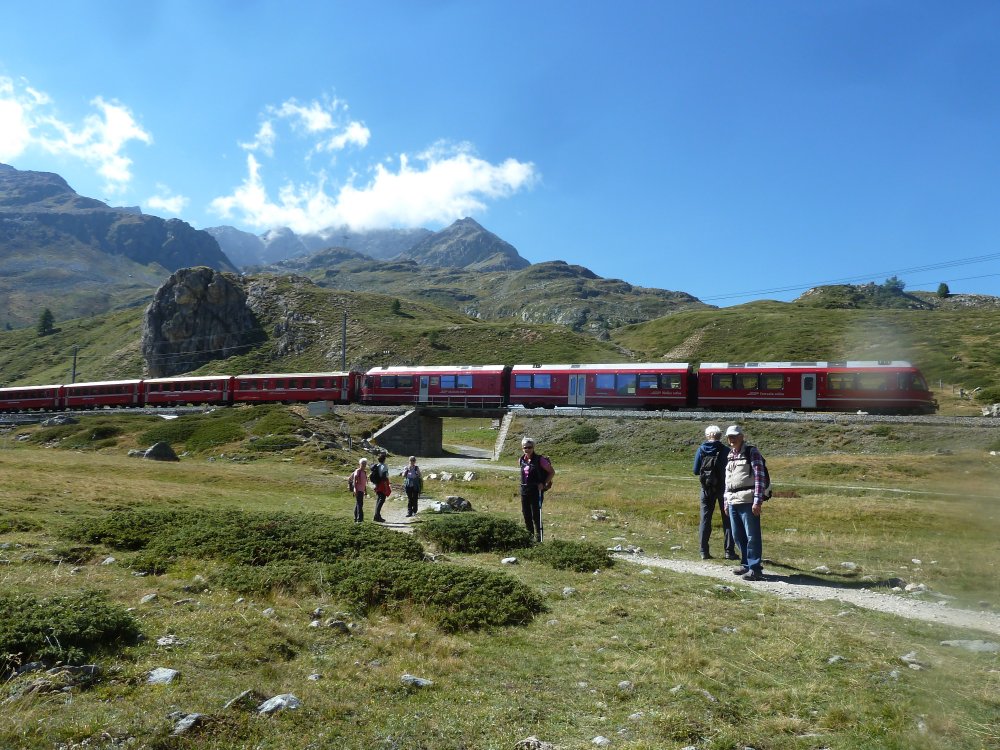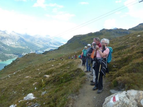 Viele eindrucksvolle Wanderungen erlebten die Teilnehmer im Schatten der Eisriesen der Berninagruppe. Beeindruckenden Ausblicke von der Fuorcla Surlej ins Val Roseg und anschließender Wanderung nach Pontresina. Der Höhenweg von der Alp Languard zum Aussichts-Highlight Muottas Muragl mit dem atemberaubenden Ausblick auf die Oberengadiner Seen. Nicht weniger beeindruckend war die Wanderung von der Alp Grüm entlang des Lago Bianco, über die Bahnstation Bernina zur Bahnstation Diavolezza und anschließender Seilbahnfahrt hoch zur Diavolezza. Der Blick auf Piz Bernina mit dem berühmten Biancograt, über die Spitzen der Bellavista zum Piz Palü, daruter der gewaltige Eisstrom des Persgletschers- einfach überwältigend.
